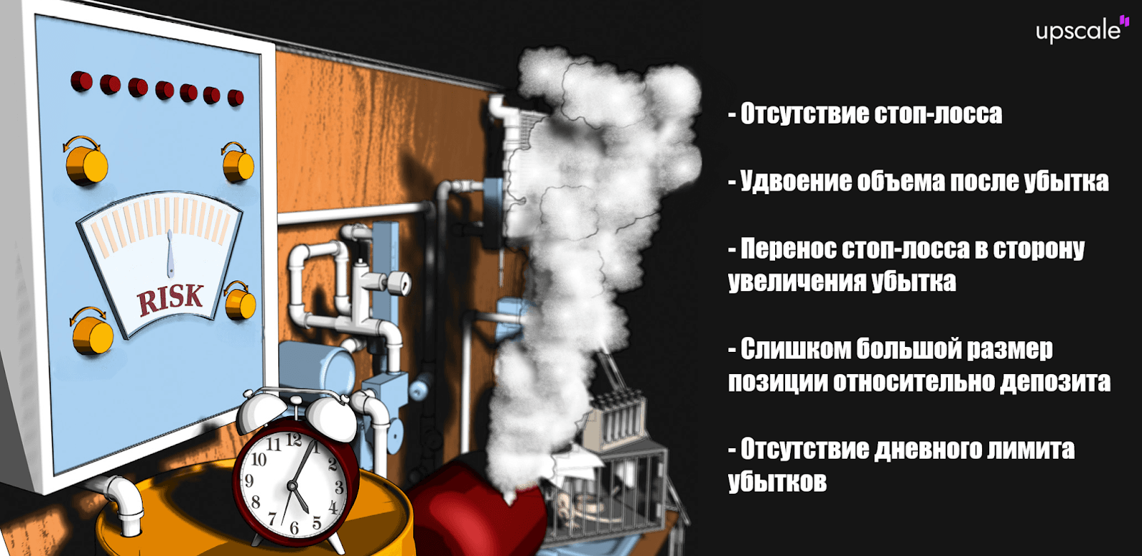 Увеличение размера позиции после убытка в попытке быстро восстановить убытки нарушает все принципы контроля. Revenge trading с удвоенным или утроенным объемом создает катастрофический риск при повторном убытке. Серия из трех таких попыток приводит к потере 30-50% депозита за несколько часов.